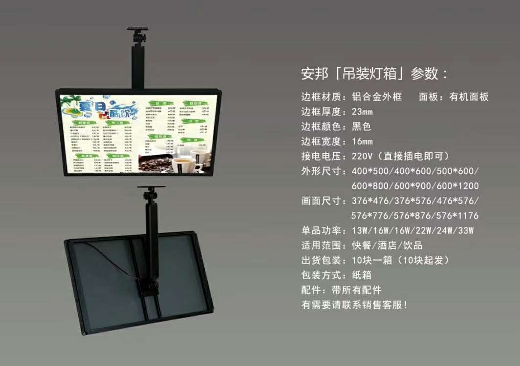 產(chǎn)品用途超薄節(jié)能燈箱主要適用范圍:廣告媒體、墻面裝飾宣傳、室內(nèi)外指示牌……